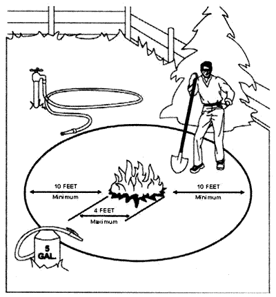 Responsible person shall be in attendance with a tool (shovel, rake, etc) until the fire is extinguished